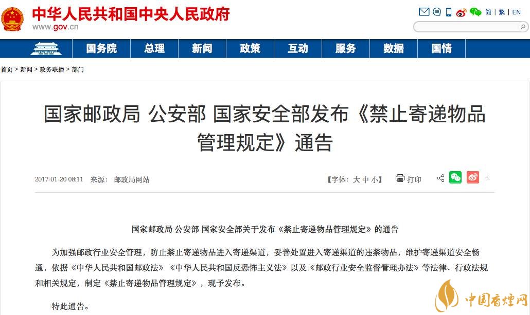2018香煙郵寄的新規(guī)從適用范圍等多方面對禁止寄遞物品作出明確的規(guī)范性要求,同時(shí)發(fā)布禁止寄遞物品指導(dǎo)目錄。危害國家安全、擾亂社會秩序、破壞社會穩(wěn)定的各類物品,危及寄遞安全的爆炸性、易燃性、腐蝕性、放射性等各類物品,法律法規(guī)等有關(guān)規(guī)定禁止寄遞的其他物品,都屬于禁止寄遞物品范圍。