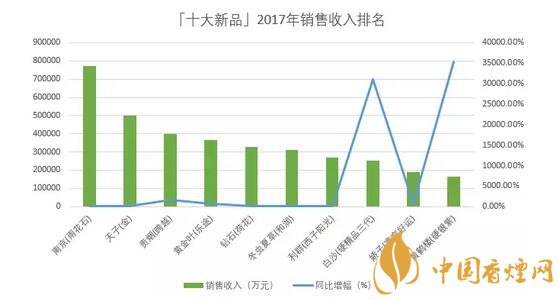 以銷售收入評價,「十大新品」2017年合計(jì)銷售收入達(dá)到354.3億元,同比增加139.3億元,增長64.7%,平均單箱批發(fā)均價達(dá)到6.2萬元;銷售收入最高的「南京(雨花石)」達(dá)到77.4億元,最少的「黃鶴樓(硬銀紫)」只有16.3億元;單箱批發(fā)均價最高的「南京(雨花石)」達(dá)到13.25萬元,最低的「黃鶴樓(硬銀紫)」只有3.25萬元。