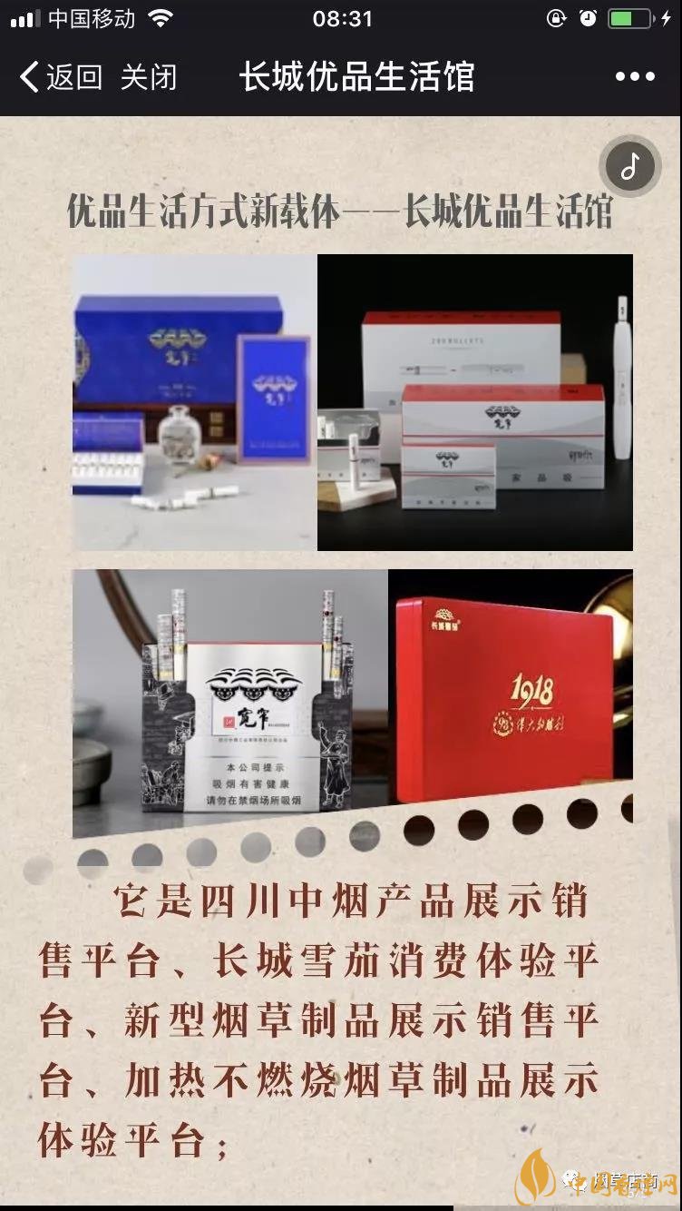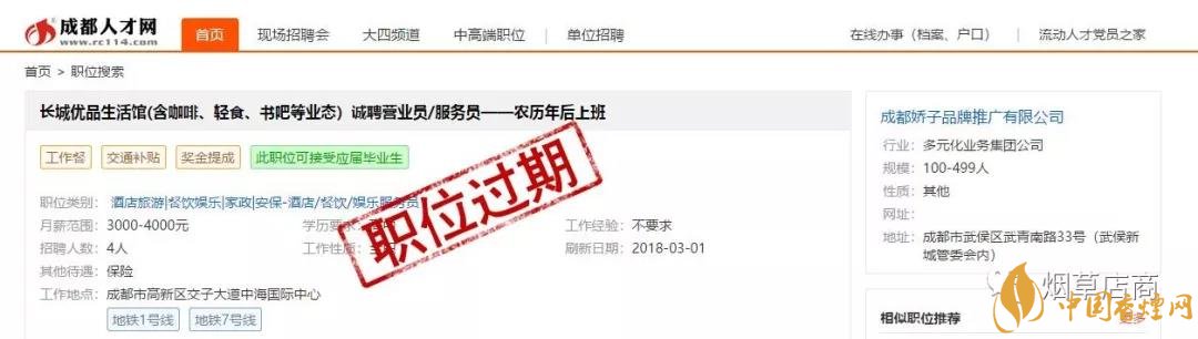 前面為大家介紹了,四川中煙第一次新零售發(fā)聲 創(chuàng)新高質(zhì)量發(fā)展全力謀變(優(yōu)品生活體驗(yàn)店)。朋友圈里確實(shí)有長(zhǎng)城優(yōu)品生活館的H5宣傳介紹,而且也確實(shí)聲稱自己是“全國(guó)首家煙草集合店”。在介紹里面也有它是“煙草、咖啡、輕食、書籍與文創(chuàng)產(chǎn)品”五大生活元素的完美融合者。它是四川中煙產(chǎn)品展示銷售平臺(tái)。據(jù)說本月成都長(zhǎng)城優(yōu)品生活館開啟。此外,小編也在成都人才網(wǎng)看到了已經(jīng)過期的“長(zhǎng)城優(yōu)品生活館(含咖啡、輕食、書吧等業(yè)態(tài))誠(chéng)聘營(yíng)業(yè)員/服務(wù)員——農(nóng)歷年后上班”的招聘啟事,通過職位描述可以感受店內(nèi)的大概服務(wù)