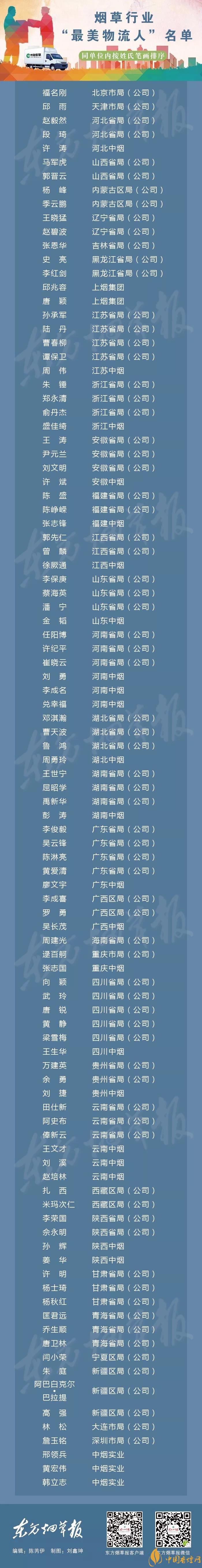 以上就是香煙網(wǎng)小編為大家整理介紹的關(guān)于2018100名基層員工獲評最美物流人名單相關(guān)信息,更多了解點擊:2018細(xì)支煙質(zhì)量抽查南京(雨花石)奪冠:一價類綜合質(zhì)量第一