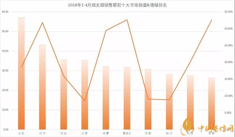 眾所周知近年來(lái)細(xì)支煙在柜內(nèi)可謂十分十分盛行!細(xì)支煙得到了消費(fèi)者的廣泛接受,并以燎原之勢(shì)把外煙帶來(lái)的新鮮感迅速轉(zhuǎn)換為民族品牌的認(rèn)同度。如今東三省細(xì)支煙再次脫銷,為了更好的了解,下面香煙網(wǎng)小編為大家整理介紹2018年1-4月細(xì)支煙銷量銷售額前十大市場(chǎng)排名。