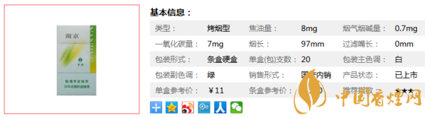 南京(綠夢都)香煙為南京品牌旗下的一款香煙,采用世界一流的HXD煙絲膨脹技術(shù),獨特的加工工藝和新型溝槽加蕊濾嘴棒新技術(shù),采用高透氣度的法國進口卷煙紙,從而有效地降低了焦油和一氧化碳的含量,提高了產(chǎn)品吸食的安全性。下面就由香煙網(wǎng)小編帶大家一起來了解一下南京綠夢都香煙的相關(guān)信息。