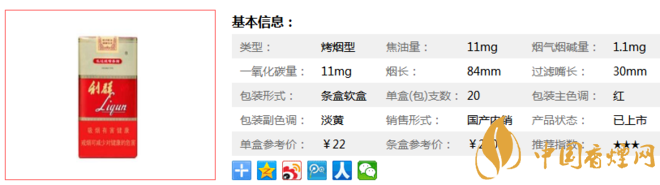 | 類(lèi)型 :烤煙型 | 焦油量 :11mg | 煙氣煙堿量 :1.1mg | 一氧化碳量 :11mg |
