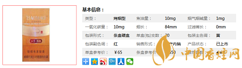 | 類(lèi)型 :烤煙型 | 焦油量 :10mg | 煙氣煙堿量 :1mg | 一氧化碳量 :10mg |