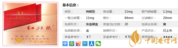 | 類(lèi)型 :烤煙型 | 焦油量 :11mg | 煙氣煙堿量 :1mg | 一氧化碳量 :11mg |
