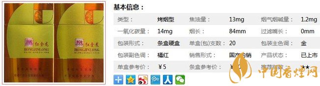 以上便是由香煙網(wǎng)小編為大家介紹的關于紅金龍?zhí)旆絻r格及參數(shù) 紅金龍?zhí)旆?元一包!相關信息,想要了解更多有關內(nèi)容請點擊:紅金龍10--20元的煙哪個好抽排行 紅金龍10--20元的煙推薦(6款)
