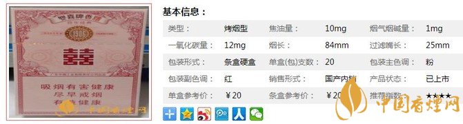 輔材設(shè)計(jì)上,選用各種新型卷煙材料,在確保卷煙品質(zhì)風(fēng)格的前提下達(dá)到了降焦減害的目的。采用了高品質(zhì)、低焦油、低危害的再造煙葉有機(jī)地融合到葉組配方中,發(fā)揮了再造煙葉降焦減害和特色增香的特殊功效。下面我們一起來看雙喜百年經(jīng)典的參數(shù)信息:焦油量:10mg. 煙堿量:1mg. 一氧化碳量:12mg.