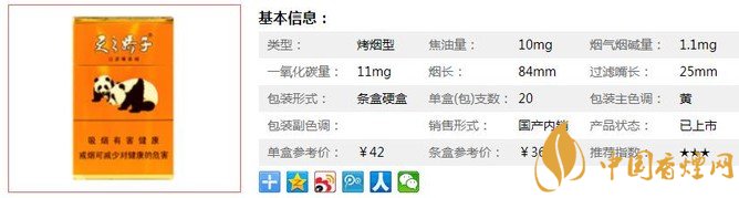 | 類型 :烤煙型 | 焦油量 :10mg | 煙氣煙堿量 :1.1mg | 一氧化碳量 :11mg |