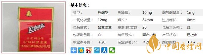 | 類型 :烤煙型 | 焦油量 :10mg | 煙氣煙堿量 :1.1mg | 一氧化碳量 :12mg |