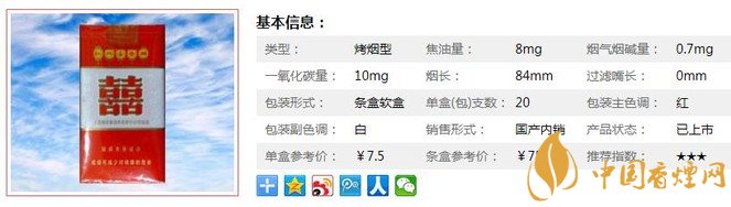 紅雙喜軟8mg前半段挺淡的,還伴有絲絲奶香,估計是受低焦政策影響,后半段開始慢慢提勁,有點上海紅雙喜(軟)的感覺了。抽完回味也不錯。總體來講,煙氣純正,不愧是上海煙草集團的產品,而且性價比高,值得拿來當口糧。經香煙網小編市場調查紅雙喜軟8mg售價為7.5元/包。