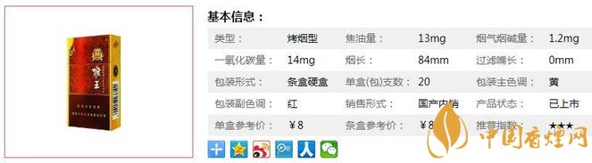 | 類型 :烤煙型 | 焦油量 :13mg | 煙氣煙堿量 :1.2mg | 一氧化碳量 :14mg |