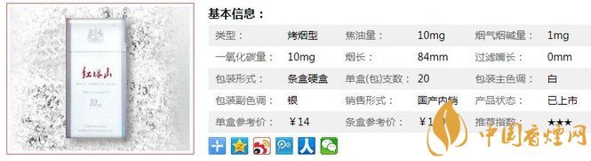 | 類型 :烤煙型 | 焦油量 :10mg | 煙氣煙堿量 :1mg | 一氧化碳量 :10mg |