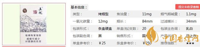 | 煙長:84mm | 過濾嘴長:34mm | 包裝形式:條盒硬盒 | 單盒(包)支數(shù):20 |