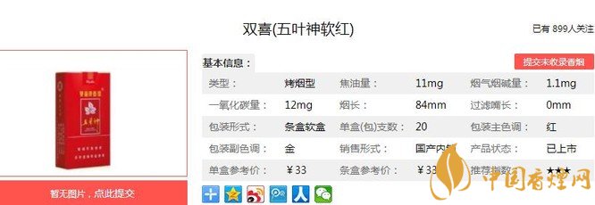 以上便是由香煙網(wǎng)小編為大家介紹的關(guān)于雙喜五葉神軟紅價格及參數(shù) 中式卷煙的代表分析的相關(guān)信息,想要了解更多有關(guān)內(nèi)容請點擊:雙喜鴻喜價格表一覽 雙喜鴻喜定位于喜慶商務(wù)用煙