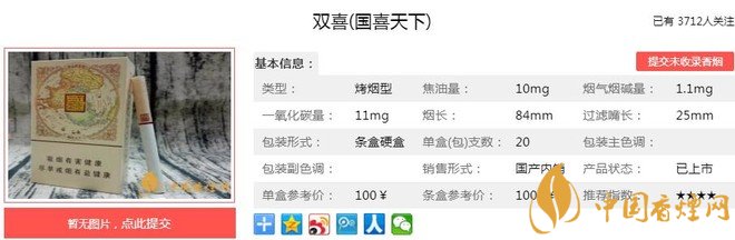 以上便是由香煙網(wǎng)小編為大家介紹的關(guān)于雙喜國喜天下多少錢一包 雙喜國喜天下口感及參數(shù)的相關(guān)信息,想要了解更多有關(guān)內(nèi)容請(qǐng)點(diǎn)擊:七匹狼通??诟屑皡?shù) 七匹狼通福價(jià)格21元一包