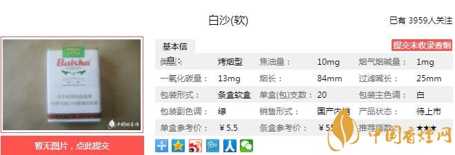 白沙軟煙支長84mm,過濾嘴長25mm,煙嘴構(gòu)造簡單,煙支捏上去有點硬,卷紙潔白,無油點和發(fā)黃現(xiàn)象,煙葉切工頗為整齊。下面我們一起來看白沙軟的參數(shù)信息:焦油量:10mg 煙堿量:1.0mg 一氧化碳量:13mg
