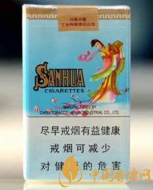煙盒正面包裝以藍(lán)天白云為背景,從藍(lán)天灑下朵朵紅花,背面一位婀娜多姿的古代美女輕盈的站在白云之上,從花籃中灑下美麗的花朵,寓意著給民間帶來風(fēng)調(diào)雨順,國泰民安,與正背面金色的散花漢字以及SANHUA漢語拼音共同構(gòu)成了一幅美麗的賞心悅目的畫面。
