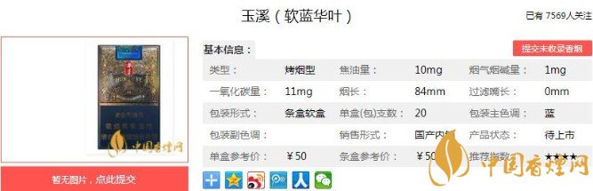 以上便是香煙網小編為大家介紹的關于玉溪軟藍華葉價格及圖片分析 包裝精美大氣!的相關信息,看完之后大家是不是對于玉溪(軟藍華葉)這款香煙的相關信息更加了解呢。大家還想查詢更多的相關內容歡迎點擊:玉溪香煙價格及圖片 這幾款口碑較高!