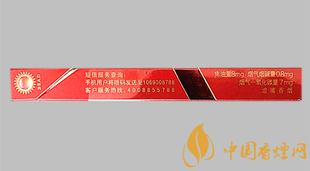 | 類型 :烤煙型 | 焦油量 :8mg | 煙氣煙堿量 :0.8mg | 一氧化碳量 :7mg |