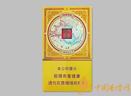 金國(guó)喜細(xì)支采用的是“天子黃”與“貴族紫”完美糅合,輔以側(cè)翻式開(kāi)蓋設(shè)計(jì),彰顯尊貴風(fēng)雅格調(diào),五星級(jí)視覺(jué)與享受。煙盒正背面的主圖案是由北半球和南半球的地圖構(gòu)成,地圖的顏色有淡藍(lán)色和深紅色,由七大洲的板塊和海洋組成,有著世界性的大格局和“一帶一路”的概念,非常的霸氣威嚴(yán),過(guò)目不忘。