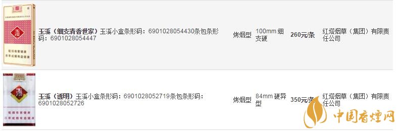 玉溪煙價格表和圖片大全