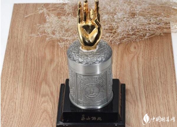 泰山—佛光光錫罐。"史上最貴的煙”之一,錫罐包裝,上面有金光燦燦的佛手,還很刺眼,相信99%的人都沒有見過這樣的香煙盒子吧,誰能想到這個(gè)東東是一盒煙,打破煙草外包裝的傳統(tǒng)定義啊,光看這個(gè)盒子就知道不是拿在手里抽的,這得有多奢侈啊!市場參考價(jià)2000元/條