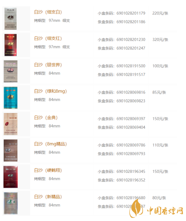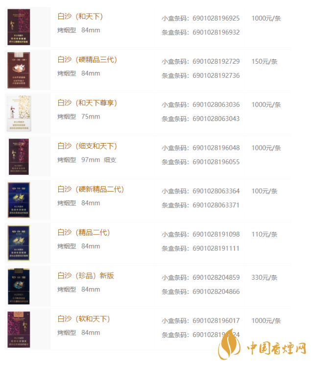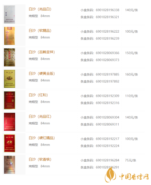 2020年白沙香煙最新價(jià)格表和圖片大全