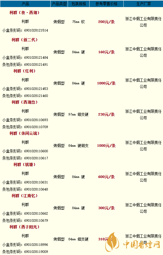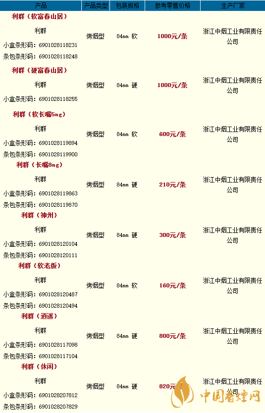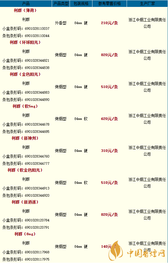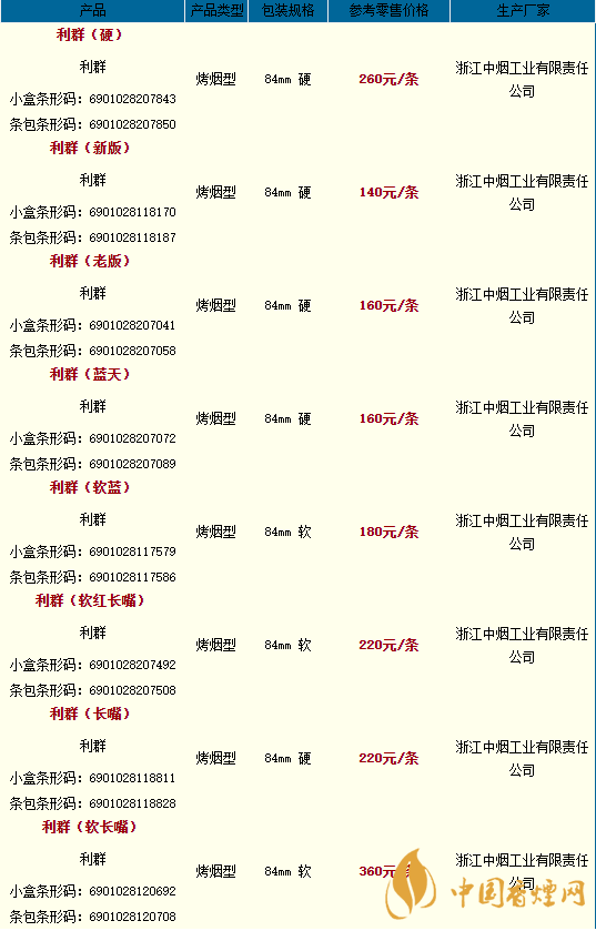 2020利群香煙全部系列價格一覽