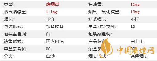 | 類型 :烤煙型 | 焦油量 :10mg | 煙氣煙堿量 :1mg | 一氧化碳量 :12mg |