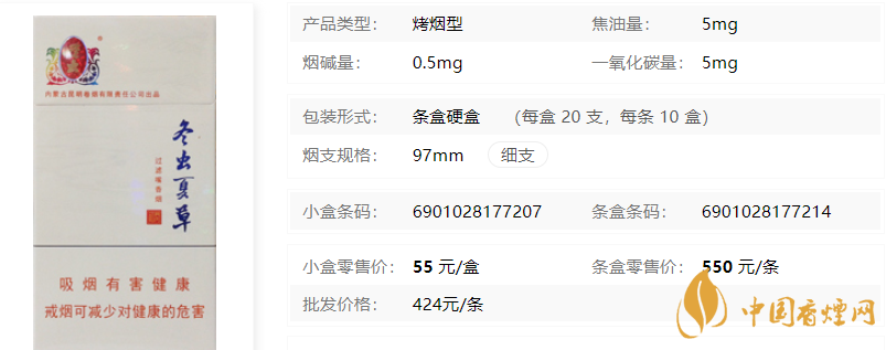 在了解了2020冬蟲夏草(和潤)香煙多少錢一包之后,為了大家能更詳見的了解此煙,小編特意將冬蟲夏草(和潤)香煙核心參數(shù)進行了整理,以便于對它進行更深入的了解。