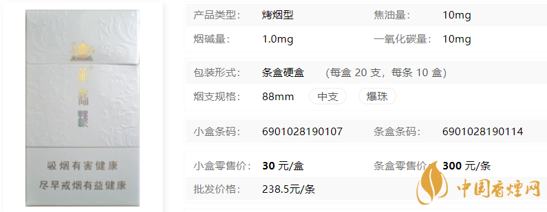 在了解了2020黃鶴樓奇景多少錢一包之后,為了大家能更詳見的了解此煙,小編特意將黃鶴樓香煙核心參數(shù)進(jìn)行了整理,以便于對(duì)它進(jìn)行更深入的了解。