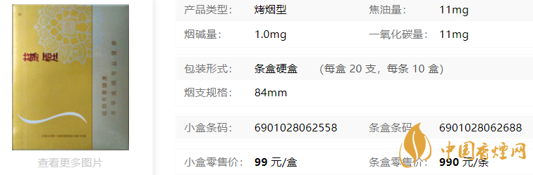 | 煙長:84mm | 過濾嘴長:25mm | 包裝形式:條盒硬盒 | 單盒(包)支數(shù):20 |
