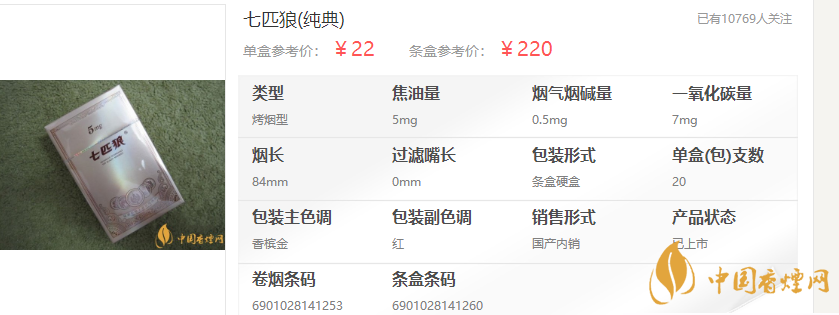 在七匹狼香煙價(jià)格表圖中,七匹狼(純典)5mg性價(jià)比還算高,這款七匹狼5mg價(jià)格是多少?據(jù)調(diào)查它的市價(jià)為22元/包。它采用國(guó)內(nèi)最優(yōu)質(zhì)的煙葉原料,國(guó)際領(lǐng)先的降焦技術(shù),精心調(diào)香卷制而成??诟型怀龉忝厶鹣泗酆蠠煵荼鞠愕奈兜溃瑢?duì)于喜低焦煙的煙客,它的殺癮功能方面不錯(cuò),甜潤(rùn)柔和拿捏也及為到位。強(qiáng)烈推薦給喜愛淡口味的煙客,絕對(duì)的優(yōu)質(zhì)良品。