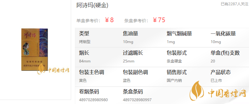 【阿詩瑪硬金多少錢一盒 阿詩瑪香煙硬盒價格表】相關推薦文章: