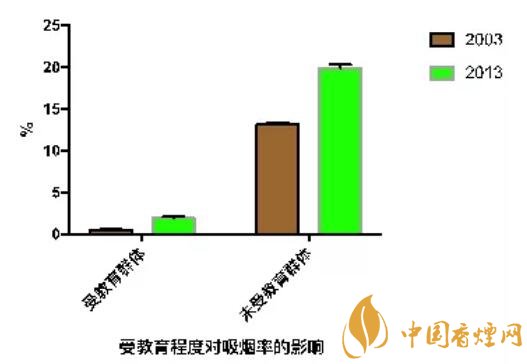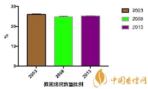 研究結(jié)果顯示,2003年,2008年以及2013年我國的煙民比例分別為26.0%,24.9%,25.2%,始終高居不下。2003年,男性煙民的數(shù)量相對(duì)較高(48.4%)。女性群體的煙民比例則相對(duì)較低(3.1%)。