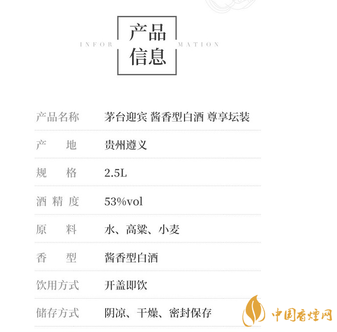 以上是小編整理的有關(guān)茅臺(tái)迎賓尊享壇裝多少錢的最新信息,相信在座的朋友們聽(tīng)到小編的介紹有所認(rèn)識(shí),但是小編在這里提醒一句以上信息整合于網(wǎng)絡(luò),更多最新最實(shí)用的資訊請(qǐng)持續(xù)關(guān)注香煙網(wǎng)。