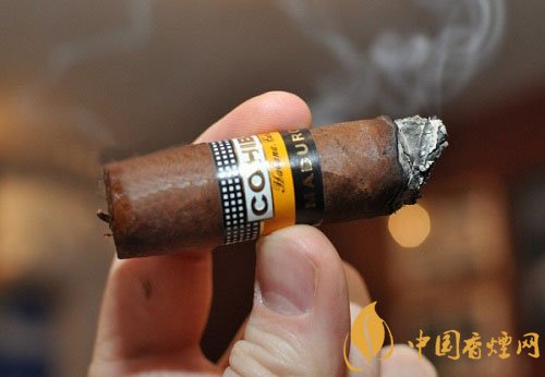 味道非常飽滿,噴薄而出,即使煙氣略微輕盈,也掩飾不住那濃重的意味。初燃以木味為主,伴有少許的皮革和橘皮味,攝一口煙氣經過鼻腔,很沖,回味有點辣喉。不愧是高希霸濃郁的系列。燃燒中規(guī)中矩,不算完美但也不差勁,持灰2厘米左右時,第一段煙灰自然脫落(整個過程4段煙灰)。稍顯松散。
