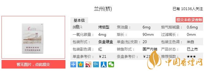 以上便是由香煙網(wǎng)小編為大家介紹的關(guān)于蘭州橋細(xì)支煙價(jià)格 蘭州橋口感及參數(shù)分析的相關(guān)信息,想要了解更多有關(guān)內(nèi)容請(qǐng)點(diǎn)擊:金圣滕王閣·回味無窮多少錢一包 回味無窮口感及參數(shù)介紹