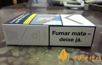 正面的包裝設(shè)計(jì),也是目前歐盟版本的標(biāo)準(zhǔn)式樣。翻蓋上的文字為葡語,內(nèi)容自然是關(guān)于吸煙有害健康了。