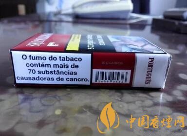 此款香煙的名字,叫做葡萄牙。從語(yǔ)言文字上看,是葡語(yǔ)寫(xiě)法。這是一款完稅版本、軟紅款式的混合型香煙。讓我們一起來(lái)看一下。