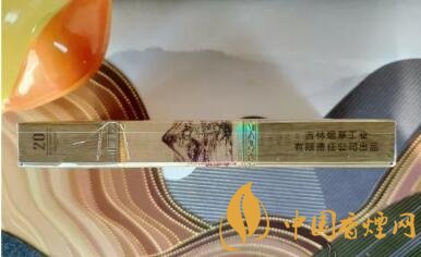 濾嘴與煙支以一條鐳射的窄條環(huán)繞,每支煙支的濾嘴上都印著長白山及山水圖,還有與煙盒正面同樣的詩句。