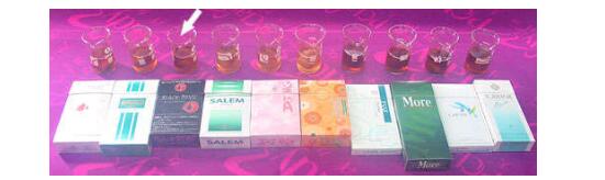 在主流煙氣的氣相物中,最主要的有氮、氧、二氧化碳、一氧化碳和氫。這5種氣體約占總氣相物的90%,占總煙氣釋放量的85%左右。除此之外,還有一些其它化學成分。其中最主要的有害成分就是煙堿(尼古丁),焦油,一氧化碳。接下來就讓我們對這幾種有害物質(zhì)進行評測。