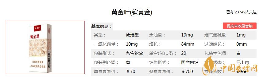 以上是香煙網(wǎng)小編為大家整理介紹的黃金葉軟黃金的價格參數(shù)介紹以及口感分析,希望為各位煙民們提供幫助。想了解更多關(guān)于黃金葉軟黃金的香煙信息,歡迎點擊:黃金葉(軟黃金)香煙價格表和圖片 黃金葉軟黃金多少錢一包