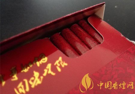 文中此款的包裝,相比于之前紅黃兩色,變?yōu)榱巳t色調(diào)??v觀此版細(xì)支硬紅的色澤樣式,更像是已經(jīng)停產(chǎn)了的會(huì)堂品牌曾經(jīng)的高端之作盛世典藏的細(xì)支款,尤其是大紅底色中的牡丹花紋狀圖案的運(yùn)用。