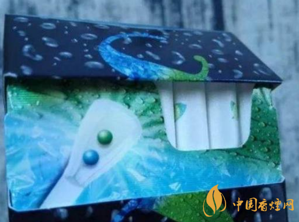 這款雙爆過濾嘴上,沒有印制數(shù)字8(單爆有),濾嘴上端的綠色是青檸圖案,下邊是藍色是薄荷標(biāo)識。