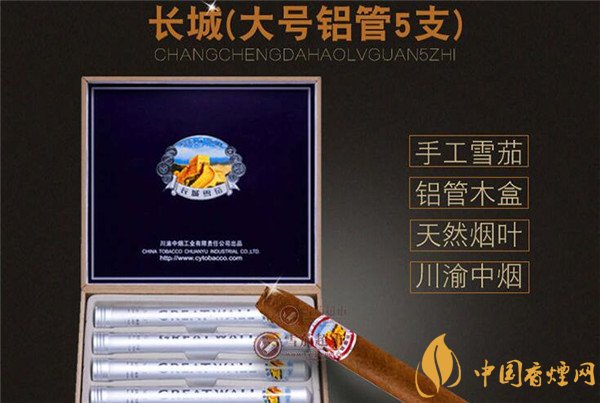 長(zhǎng)城雪茄煙(2號(hào)鋁管)價(jià)格表圖 長(zhǎng)城2號(hào)鋁管5支裝多少錢
