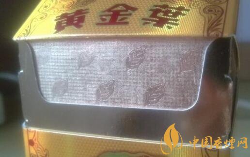 金色打造,也用上了閃光的設(shè)計(jì),而且葉片煙標(biāo)更是離不開,正面都有著暗淡底紋,上半盒身的圖案包圍著黃金葉紅色粗字和那簡(jiǎn)單深造的煙標(biāo)葉片,因?yàn)楦牧舜肿志菊Z(yǔ)的原因使到背面與正面一個(gè)樣了。