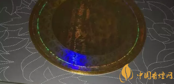 反面也是警示語(yǔ)和鐳射防偽圖案,這個(gè)鐳射標(biāo)從不同的角度能夠變換不同的內(nèi)容,有的角度看到的是芙蓉花,有的看到的是芙蓉王三個(gè)漢字和幾排拼音字母,鐳射標(biāo)的外圈成很規(guī)整的渦輪狀,能變換圖形和色彩,這在很大程度上能起到防偽的作用,幫助廣大煙民辨認(rèn)真假芙蓉王硬黃(內(nèi)外包裝)。