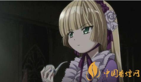 維多利加擁有著絲帶般的金色長發(fā),如天鵝絨頭巾般披散在身上,自然垂落在穿著小巧皮鞋的腳邊,瞳孔閃耀著近乎透明的翡翠綠,側(cè)臉有著陶制品特有的冰冷。身穿裝飾著絲帶和高級蕾絲花邊的哥特風格服裝,嘴里經(jīng)常叼著煙斗。