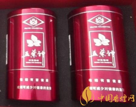 五葉神(典藏罐裝)106元/盒。香煙為五葉神品牌旗下的一款香煙。罐裝,紅色底,銀色文字,鋁合金材料,觀感雅致大方 優(yōu)秀配方工藝師配方,手工選取光潔無暇3年自然醇化期煙葉 神農(nóng)液生物減害技術(shù)。煙氣中亞硝胺,苯并芘,自由基等有害物質(zhì)綜合降幅達(dá)到63.8%。